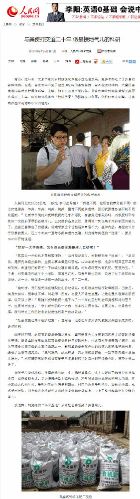 人民網(wǎng)北京5月25日電(熊旭 實習生馬倩)“糞便不同,它所含的養(yǎng)分就不同!你比如這豬糞、牛糞、羊糞、雞糞、鴨糞,面對不同的糞便吶,我們就要想辦法研制不同的菌劑。”北京農(nóng)學院的劉克鋒教授向記者介紹到。在接受記者采訪時,劉教授時不時就扶一扶他那厚厚的眼鏡片兒。1100度的高度近視,使得他一刻也離不開那副因為戴久了、邊緣已磨掉色了的眼鏡。很難想象這個說起話來聲音不大、溫和內(nèi)斂,典型知識分子形象的男人,近二十年來一直與各類糞便打交道。劉克鋒與糞便的“結緣”,要從1993年開始說起。