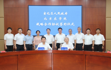 學校科技特派員駐點幫扶河北省張家口市宣化區政府,幫助宣化區四個鄉鎮建立了葡萄、生豬、蛋雞3個特色產業集群,支持宣化建設雜糧繁育示范基地,各特色產業集群輻射周邊村莊30多個,輻射農戶1000多戶。學校與宣化區簽訂戰略合作協議并共建博士工作站,致力于大豆新品種的選育和試種示范,為當地建設育繁推一體化現代種業企業打下堅實基礎。
