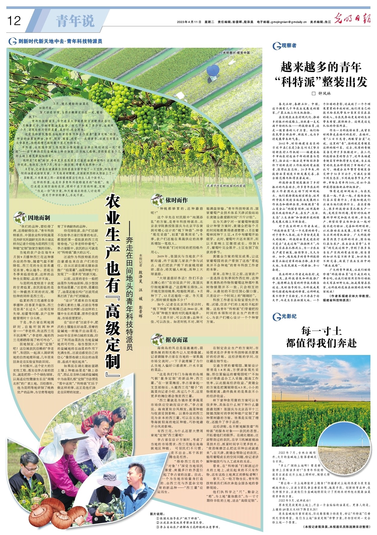這樣的形象,也是許多青年科技特派員的“標配”。他們走進五湖四海的農田,調研千差萬別的環境,定制“僅此一份”的方案,和天南海北的農人討論那些關于種田的事兒,樂此不疲。