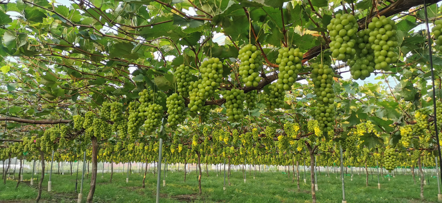 天津?qū)幒幽撤N植園內(nèi)的葡萄