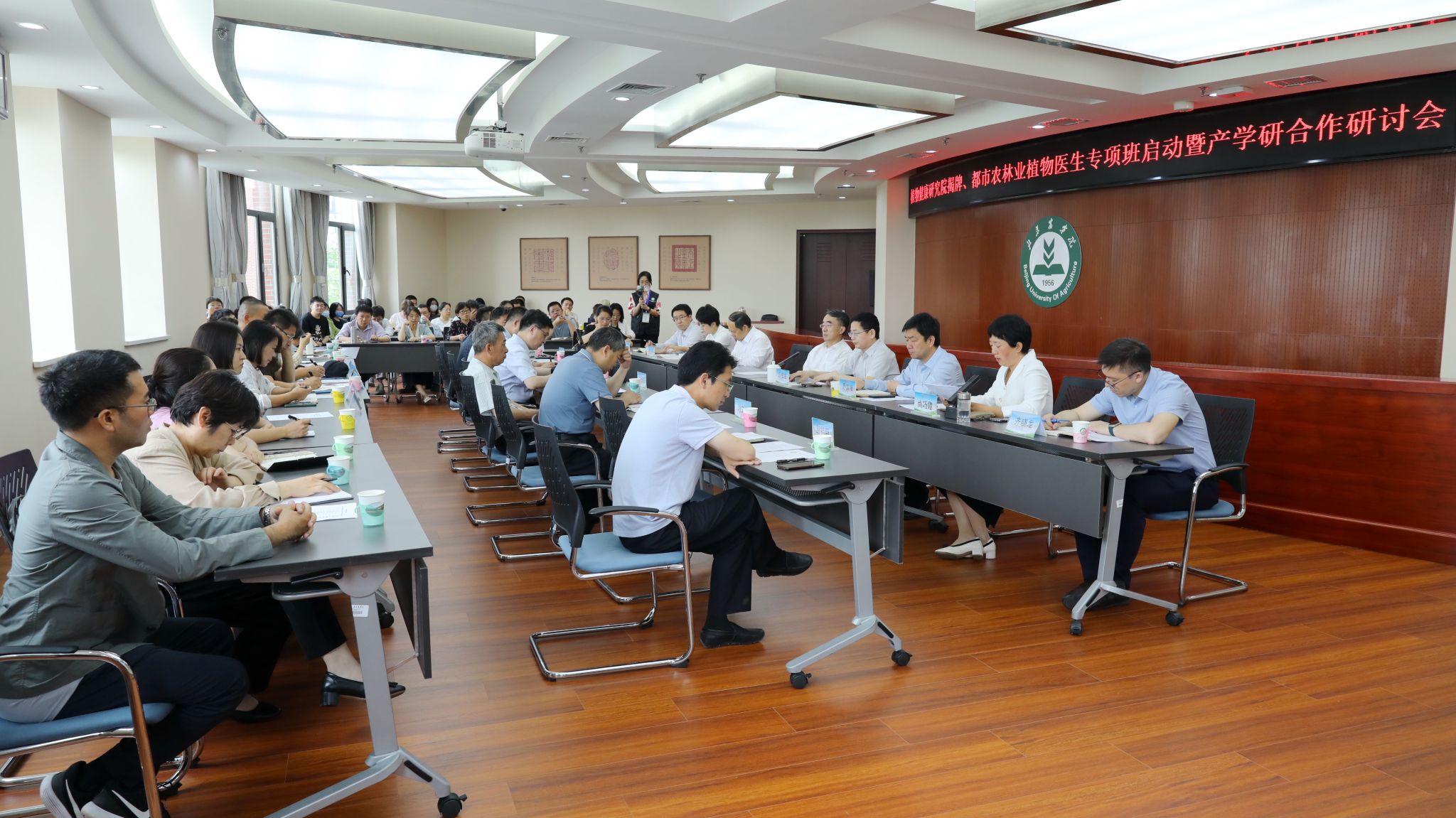 人民網(wǎng)北京5月25日電 日前,北京農(nóng)學(xué)院生物與資源環(huán)境學(xué)院植物健康研究院揭牌與都市農(nóng)林業(yè)植物醫(yī)生專項(xiàng)班啟動(dòng)暨產(chǎn)學(xué)研合作研討會(huì)在北京舉行。會(huì)上,北京農(nóng)學(xué)院黨委書記趙鋒和北京農(nóng)林科學(xué)院副院長(zhǎng)燕繼曄為北京農(nóng)學(xué)院植物健康研究院揭牌。
