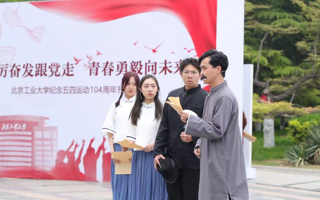 記者了解到,當(dāng)日,為展現(xiàn)青年人的藝術(shù)熱情,在北京工業(yè)大學(xué)平樂園校區(qū)日新廣場(chǎng)前舉行的“踔厲奮發(fā)跟黨走 青春勇毅向未來”紀(jì)念五四運(yùn)動(dòng)104周年升國(guó)旗儀式上,青棕櫚話劇團(tuán)的同學(xué)們帶來了情景表演《覺醒》,他們身穿長(zhǎng)袍、中山裝……再現(xiàn)了革命先輩在“覺醒年代”以青春與熱血鑄就的恢宏歷史。晚間,北工大合唱團(tuán)、學(xué)生交響樂團(tuán)在中山公園音樂堂演出,學(xué)生們現(xiàn)場(chǎng)演奏,帶來一首首“青春之歌”,演出在線上同步直播。