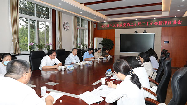 校院兩級理論學習中心組組織開展專題學習研討,先學一步、學深一層;相關職能部門通過黨校培訓班、主題班團日等形式,統籌抓好師生黨員、團學骨干專題學習;廣大基層黨支部通過“三會一課”、主題黨日、輔導報告、專題研討等多種形式,組織開展系統化、分層次的專題學習;馬克思主義學院組織思政課教師進行集體備課、開展研究闡釋,及時將全會精神融入思政課教學,積極推動全會精神進教案、進課堂、進頭腦。