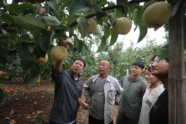 學校廣大師生黨員將全會精神內化于心、外化于行,充分發揮學科專業特色和優勢,依托教授工作站、科技小院、博士農場、鄉村振興驛站、大學科技園等平臺載體,通過黨支部對接共建、百師進百村、人才京郊行、教師科技掛職等,致力于轉化和推廣一批實用、管用、好用的農業新品種、新技術,把論文寫在京華大地上、把成果凝結在農民的收獲里。生資學院黨員教師任爭光副教授針對平谷區茅山后村的佛見喜梨病蟲害頻發的問題,帶領學生挨家挨戶尋病根,推廣示范以生物防治技術為主的病蟲害綠色防控技術,促使果品品質和產量明顯提升。植科學院園藝研究生第一黨支部書記張卿副教授和教師曹慶芹教授深入田間地頭,現場為果農開展技術培訓,科技助力特色果品產業高質量發展。園林學院付軍、王文和、王聰等老師走進山西省嵐縣王家村開展定點幫扶項目,將傳統的“賣土豆”模式進行改革創新,升級為更具創意和吸引力的“賣土豆花”模式,為農民增收開辟了新路徑。廣大師生以實際行動推動全會精神在鄉村振興前沿一線落地生根、開花結果。