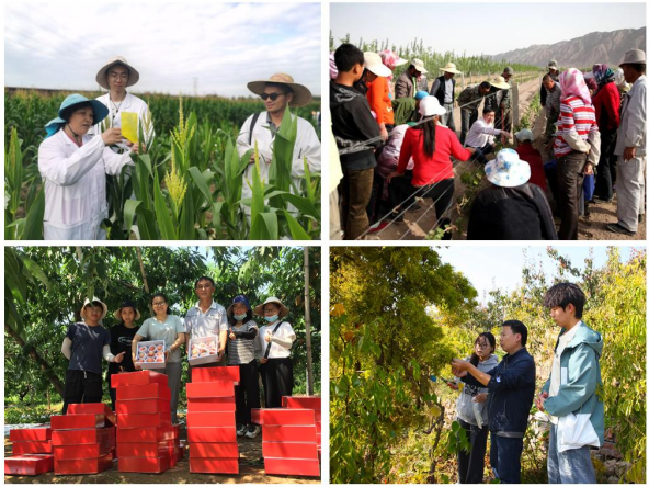 學(xué)校青貯玉米團(tuán)隊(duì)的師生堅(jiān)持25年如一日?qǐng)?jiān)守南繁科研育種基地,師生共同培育的玉米新品種“北農(nóng)青貯368”入選《國(guó)家農(nóng)作物優(yōu)良品種推廣目錄》,在內(nèi)蒙古、寧夏、青海、新疆、甘肅等畜牧養(yǎng)殖大省推廣面積累計(jì)200多萬(wàn)畝。學(xué)校師生組建的平谷“生態(tài)橋”團(tuán)隊(duì),常年扎根田間地頭開展桃枝廢棄物轉(zhuǎn)化有機(jī)肥技術(shù)研發(fā)推廣,使桃農(nóng)化肥使用量減少三分之一,每畝地節(jié)省開支2000元,助力平谷大桃登上國(guó)宴。學(xué)校李德美教授帶領(lǐng)師生堅(jiān)持18年如一日助力邊疆地區(qū)脫貧,使原本0產(chǎn)出的戈壁灘一畝可產(chǎn)出800斤葡萄,被國(guó)家標(biāo)準(zhǔn)委認(rèn)證為“國(guó)家級(jí)釀酒葡萄栽培標(biāo)準(zhǔn)示范區(qū)”,出產(chǎn)的葡萄酒獲得國(guó)內(nèi)外大獎(jiǎng)300余項(xiàng),李德美榮獲第九屆首都民族團(tuán)結(jié)進(jìn)步先進(jìn)個(gè)人、北京市脫貧攻堅(jiān)記大功等榮譽(yù)。廣大教師隊(duì)伍中還涌現(xiàn)出了一批被學(xué)生和農(nóng)民親切稱為“紅杏教授”“番茄教授”“板栗教授”“草莓教授”“甘薯教授”“奶牛教授”的先進(jìn)典型。近年來,師生服務(wù)鄉(xiāng)村振興案例連續(xù)四屆入選省屬高校精準(zhǔn)幫扶典型項(xiàng)目,連續(xù)兩次入選“全球減貧案例征集活動(dòng)”最佳減貧案例,師生攜手把論文寫在京華大地上,把成果凝結(jié)在農(nóng)民的收獲里。