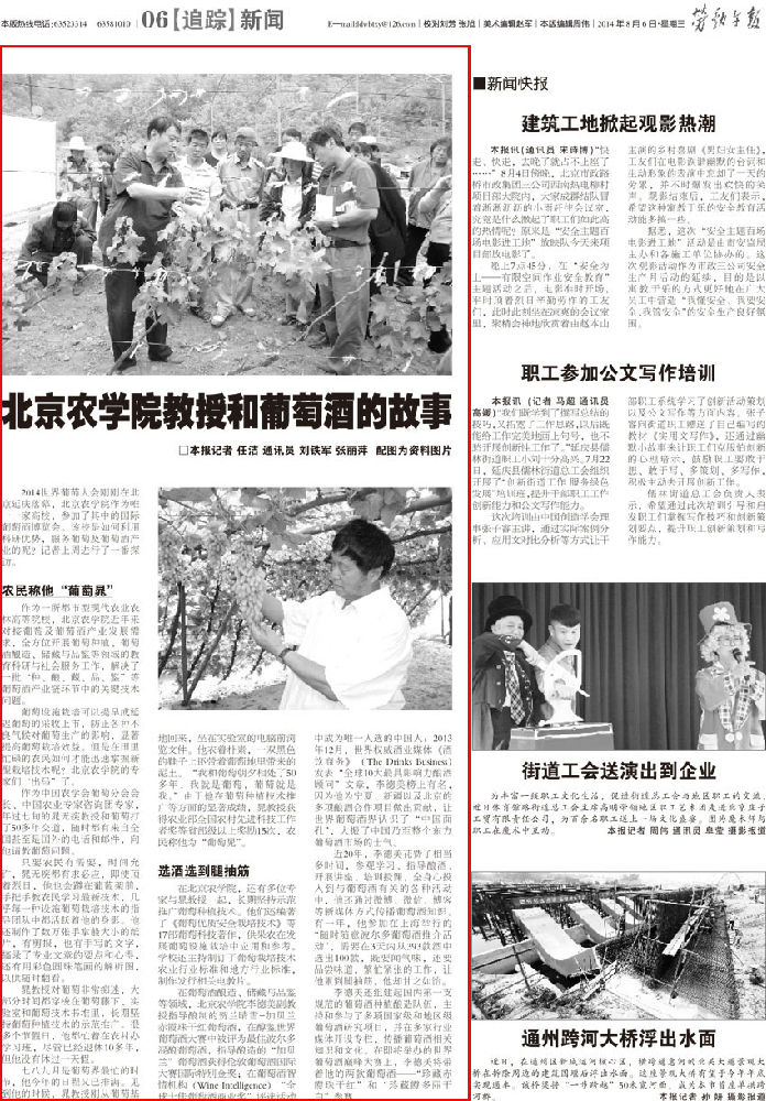 在北京農學院,還有多位專家與晁教授一起,長期堅持示范推廣葡萄種植技術。他們還編著了《葡萄優質安全栽培技術》等17部葡萄科技著作,供果農在發展葡萄設施栽培中應用和參考。學校還主持制訂了葡萄栽培技術農業行業標準和地方行業標準,制作發行相關電教片。