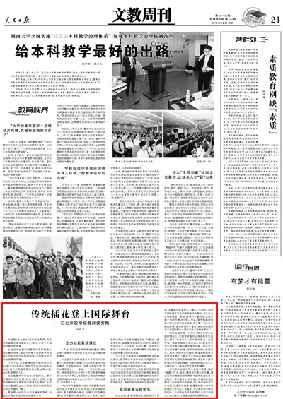 11月9日,在首都博物館戲樓內(nèi)舉辦的《古都九韻》活動(dòng)中,傳統(tǒng)花藝表演令她終生難忘,因?yàn)榻嚯x觀看表演的是出席APEC會(huì)議的政要夫人們。