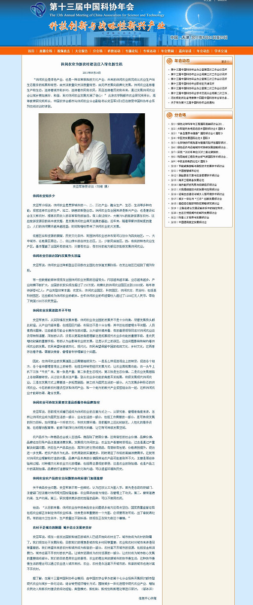 “休閑農業是綠色產業,也是一種非常親和的文化產業,未來的休閑農業將完成從農業生產向生態服務的拓展和轉變,由關注數量向關注質量轉變,由無序發展向品牌化發展。休閑農業連接著生產和生態,連接著城市和鄉村,連接著市民和農民,而且連接著歷史和未來,通過發展休閑農業會讓城鄉更加美好、和諧,我對休閑農業發展充滿了信心!” 北京農學院都市農業研究所所長、高等教育研究所所長、中國農學會都市與休閑農業分會副秘書長史亞軍9月8日在接受中國科協年會系列在線訪談時講到。