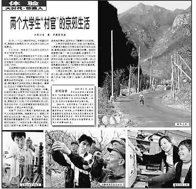 2006年春暖花開的時候,我們體驗了賈輝、王小亮兩位大學生“村官”京郊上任的新生活(下圖,本版2006年4月3日“體驗”欄目)。回城還是留下?那時的他們,對未來的路還不確定。