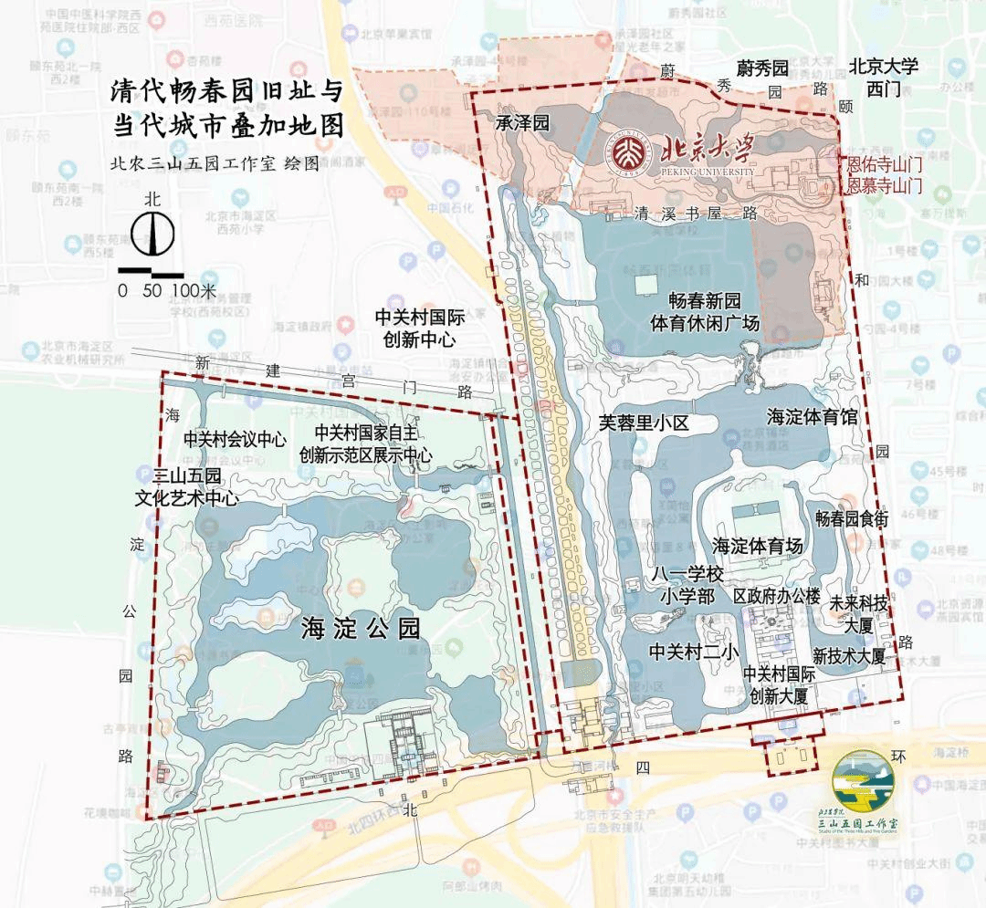 暢春園北部舊址與北京大學疊加地圖