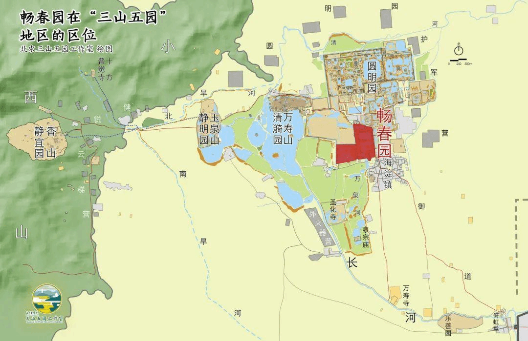 暢春園在“三山五園”地區(qū)的區(qū)位(朱強團隊繪)