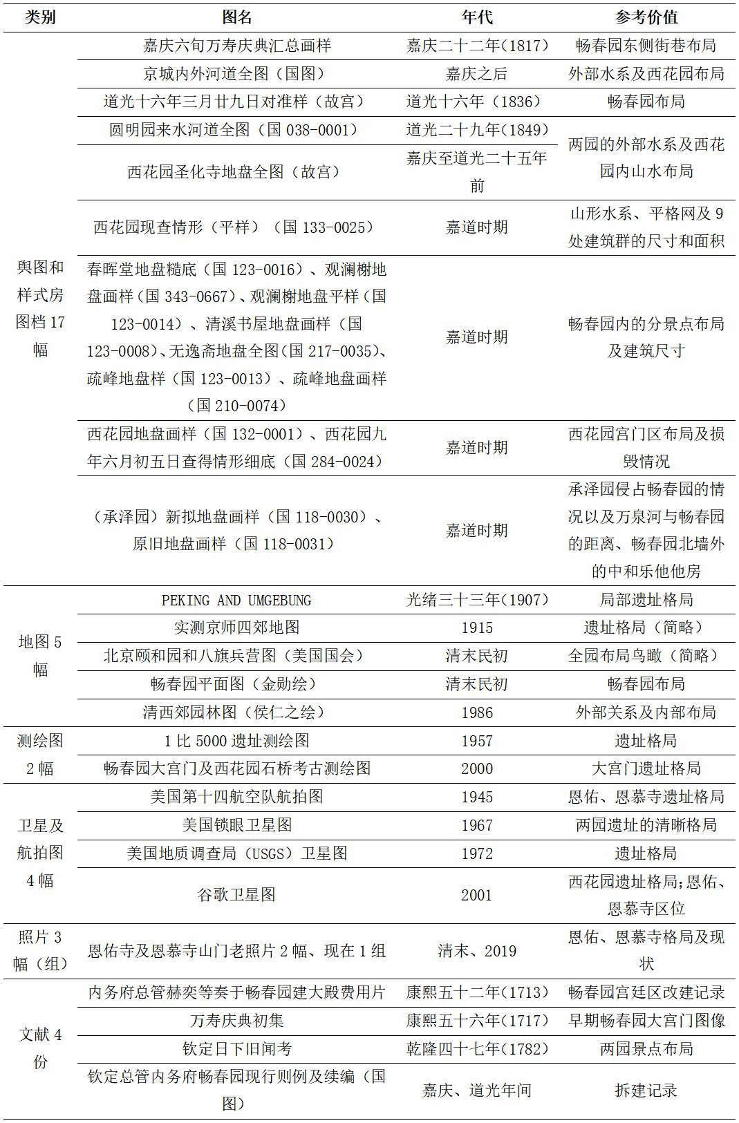 研究資料總覽(引自朱強《從城市到山水田園:暢春園盛期空間復原新探》)