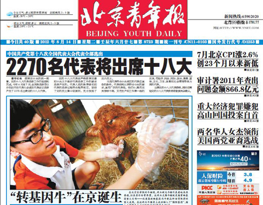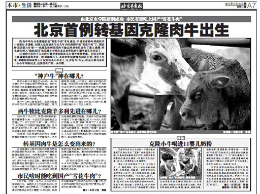 北京首例轉(zhuǎn)基因克隆肉牛出生