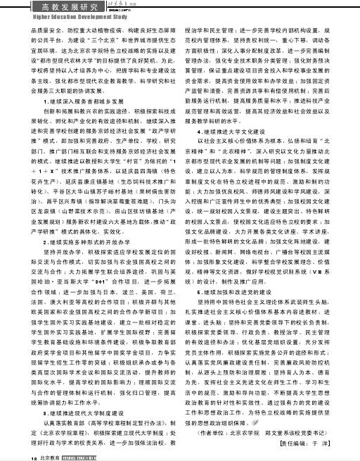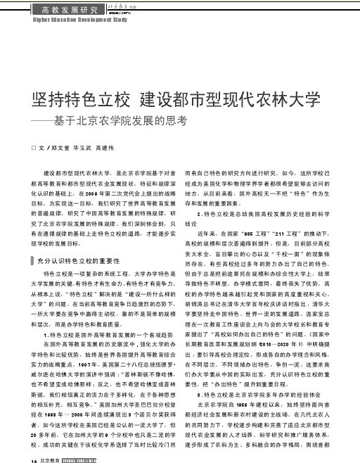 3. 特色立校是北京農學院多年辦學的經驗體會