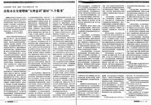 面對新形勢、新任務、新要求,在增強“五種意識”的基礎上,高校辦公室應有一種危機感和責任感,由被動服務向主動服務轉變,積極拓展服務范圍,努力做好“八個服務”。