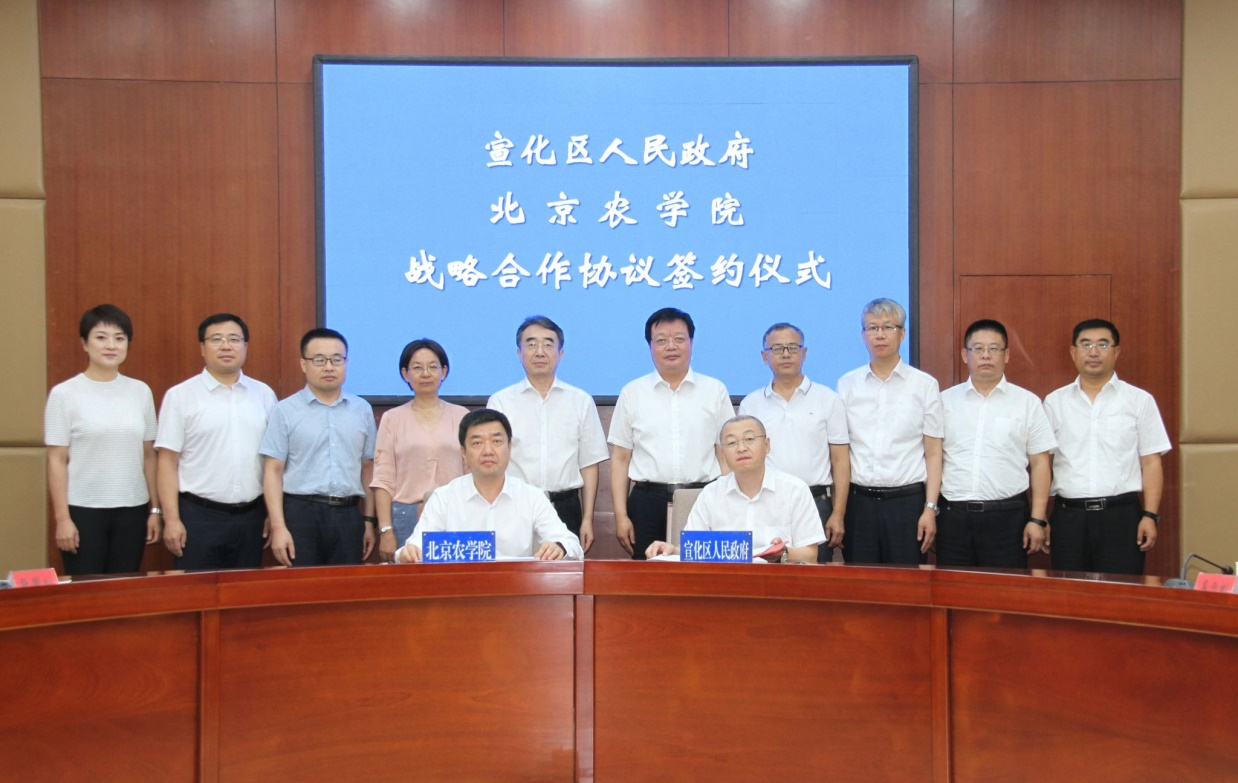 北京農學院校辦產業處負責人、宣化經開區管委會負責人代表雙方簽署了戰略合作協議。北京農學院相關部門及二級學院負責人參加調研活動。