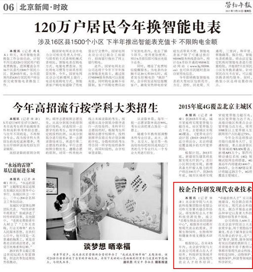 根據協議,在未來5年內,北京農學院與大北農公司將重點在人才培養、科技研發領域開展深度合作,涉及現代農業人才培養培訓、“卓越農林人才”實習基地建設、校企聯合培養研究生、現代農業科技攻關、聯合開展農業新品種審定以及重大科技獎勵申報等多個領域。