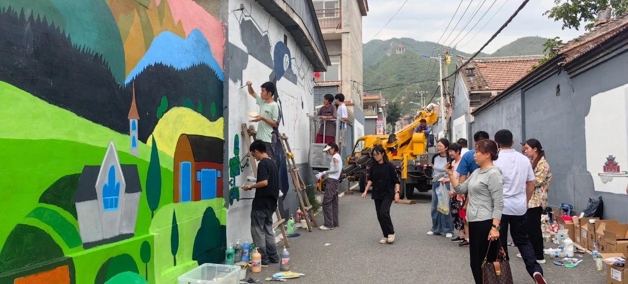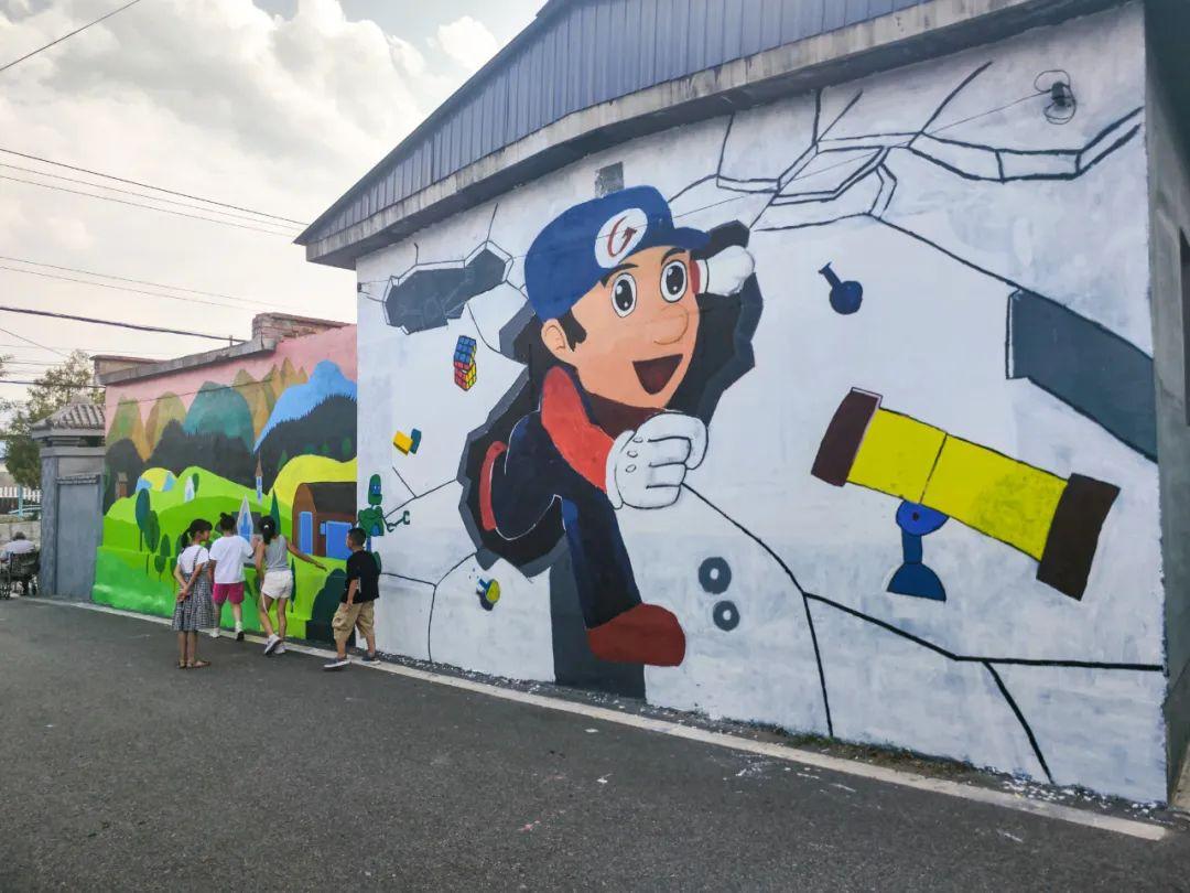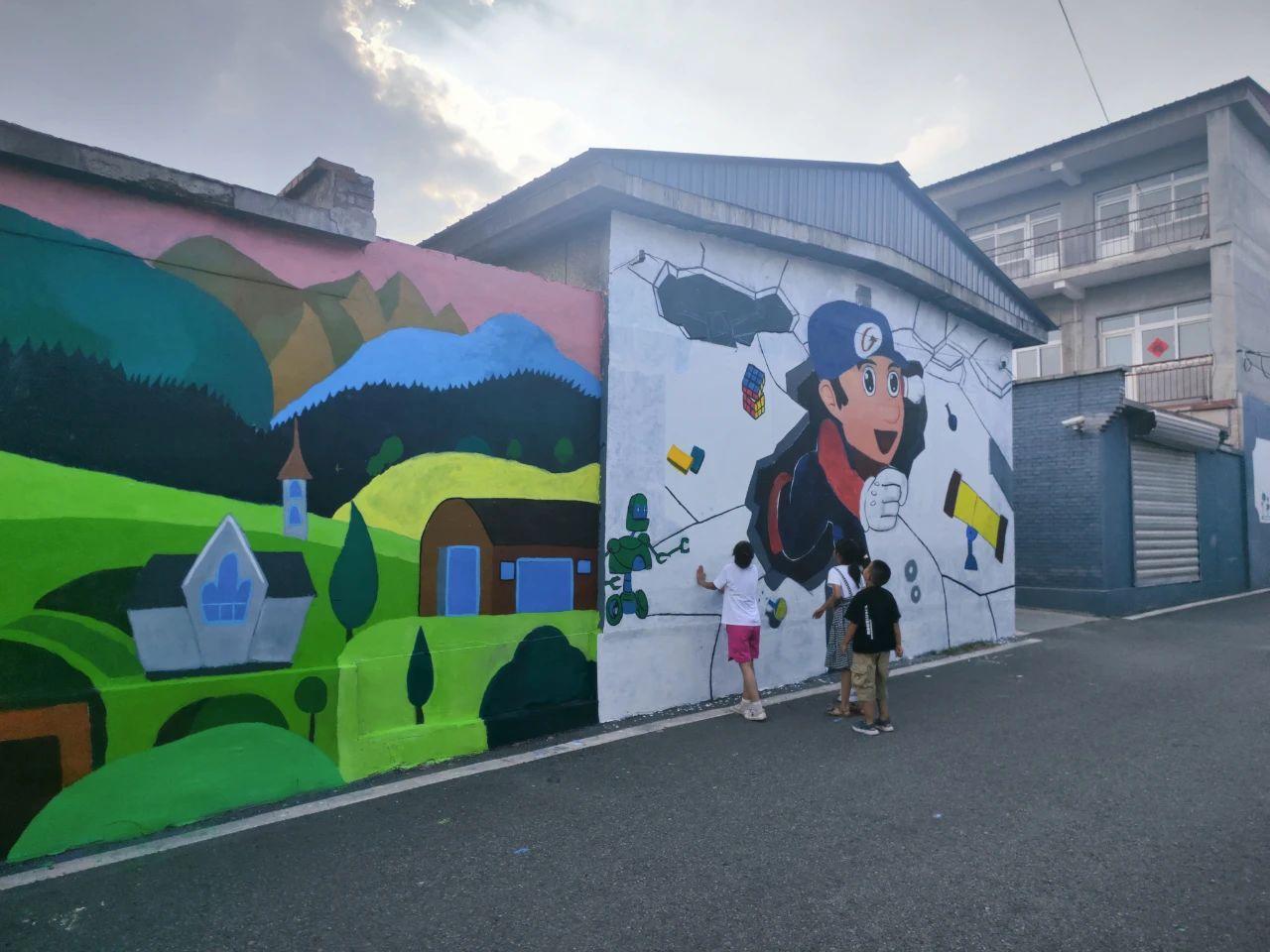 墻繪現場,師生們揮舞著畫筆,將農耕田園、動漫卡通等元素融入3D立體墻畫,專注地繪制著每一幅作品。熱鬧氛圍吸引了村民的目光,大家紛紛停下腳步,拿出手機記錄下這個美好的瞬間。