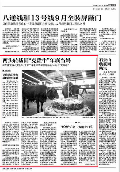 未來(lái)三年將克隆20頭公轉(zhuǎn)基因牛