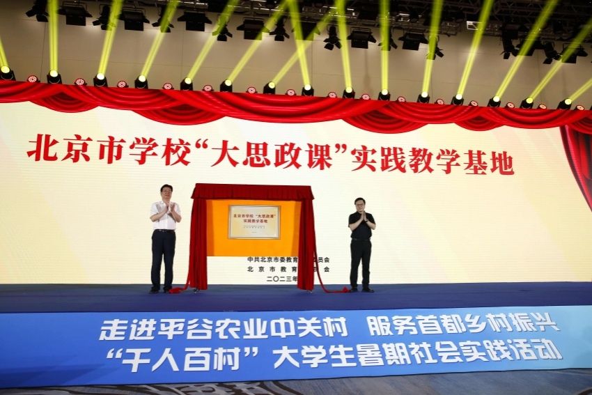 北京市委常委、教育工委書記游鈞與教育部思想政治工作司副司長余先亭為“北京市學校‘大思政課’實踐教學基地”揭牌