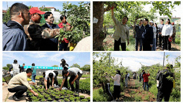 “得把‘智慧農(nóng)業(yè)’和‘生態(tài)觀光’融進(jìn)規(guī)劃,讓老果樹結(jié)新果。”團(tuán)隊(duì)老師有感而發(fā)。園子里,學(xué)生們量行距、記土壤濕度,熱火朝天開展老舊果園改造工作;“病枝得剪,反光膜鋪這兒,桃子上色才勻。”在平谷,曹慶芹和張卿老師在大桃基地指導(dǎo)修剪;韓瑩琰老師打造生菜梯田,助力汛后恢復(fù)生產(chǎn);段留生春節(jié)前帶領(lǐng)團(tuán)隊(duì)師生去草莓基地教“抗冷助轉(zhuǎn)色”技術(shù),讓果農(nóng)受益頗深……這樣的場(chǎng)景,在團(tuán)隊(duì)的10個(gè)科技小院、9個(gè)博士農(nóng)場(chǎng)里幾乎每天都在發(fā)生。