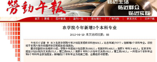 午報訊(記者 任 潔)北京農學院今年計劃在京招收本科生929人,比去年減少57個,但新增2個本科專業。該校將于本周六舉辦校園開放日和招生咨詢活動。