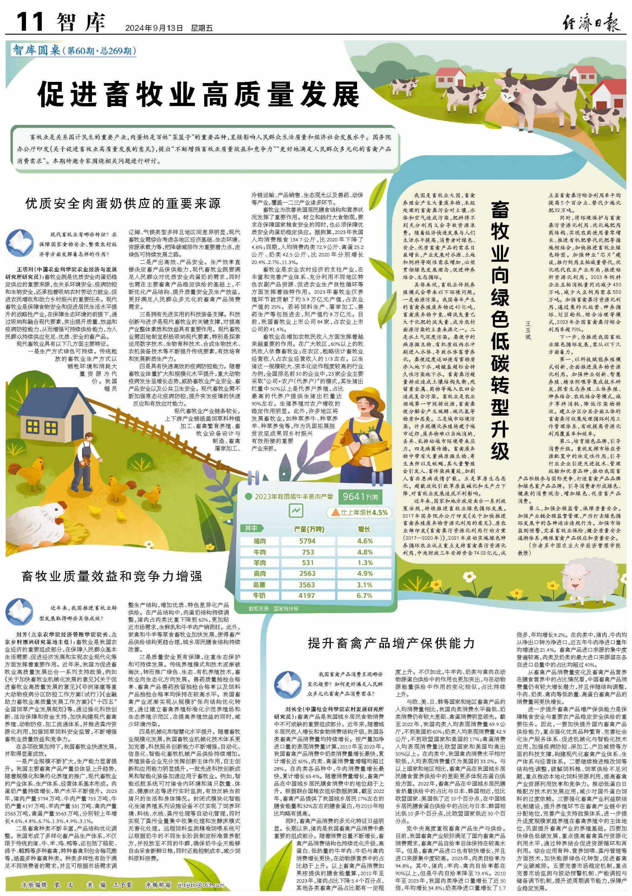 畜牧業是關系國計民生的重要產業,肉蛋奶是百姓“菜籃子”的重要品種,直接影響人民群眾生活質量和經濟社會發展水平。國務院辦公廳印發《關于促進畜牧業高質量發展的意見》,提出“不斷增強畜牧業質量效益和競爭力”“更好地滿足人民群眾多元化的畜禽產品消費需求”。本期特邀專家圍繞相關問題進行研討。