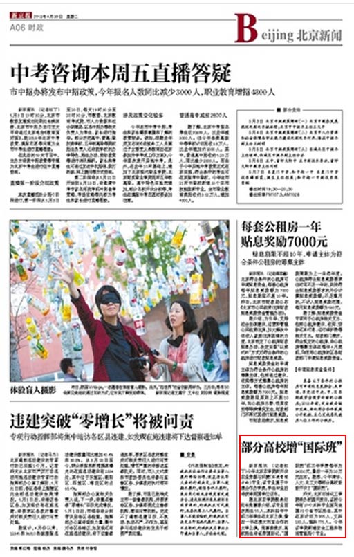 據北京農學院教務處處長張喜春介紹,該專業首次招生55人,本科四年中前三年學生在北京上課,最后一年在澳大利亞合作的大學上課。張喜春表示,高校招生將逐漸國際化,“國際班”前三年學費每年為24000元,最后一年為20萬元左右。據悉,今年清華、人大、北工大等部分高校紛紛開設了“國際班”。