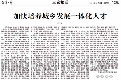 加快培養(yǎng)城鄉(xiāng)發(fā)展一體化人才