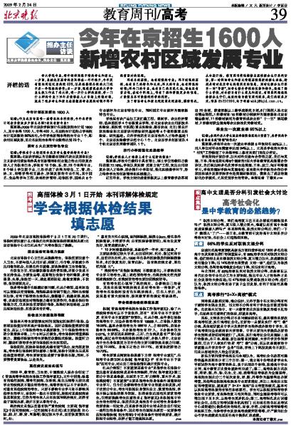 范雙喜:2009年北京農學院預計在京投放招生計劃1600人,其中本科1200人、專科400人,在京招生計劃約占學校招生計劃總數的85%左右。今年學校新增本科招生專業1個,即農村區域發展,至此在京招生本科專業數將達到23個。