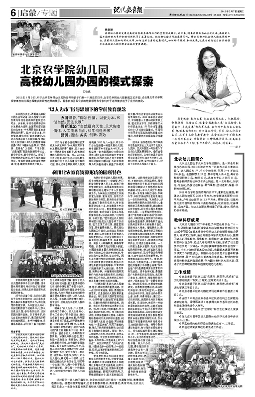 【農學院】【現代教育報】北京農學院幼兒園高校幼兒園辦園的模式探索