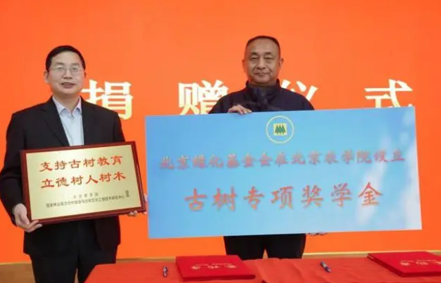 古樹保護也是北京綠化基金會的重要工作內容,為了激發北京農學院古樹保護方向班學生勤勉科研、勤奮學習,積極投身古樹保護、林業建設和綠化事業,幫助品學兼優的優秀學生順利完成學業,北京綠化基金會在北京農學院設立古樹方向專項獎學金,資金全部來自北京綠化基金會保護北京古樹名木專項基金。據北京市綠化基金會常務副秘書長王棠介紹,截至2023年3月,保護北京古樹名木專項基金已募集100余萬元。