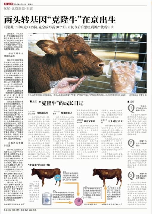 兩頭轉(zhuǎn)基因“克隆牛”在京出生
