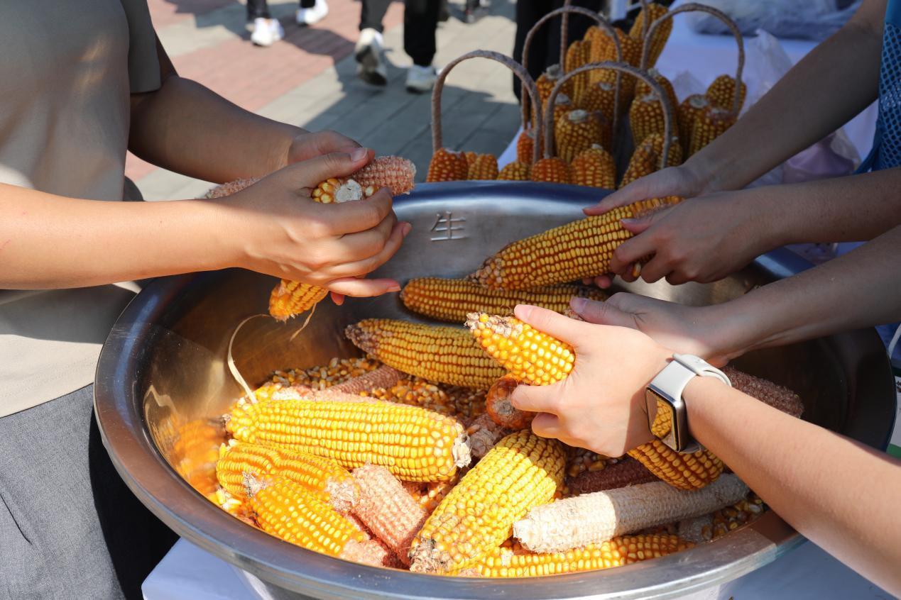 在花樣面食體驗和農業勞作體驗區,飲食中心的面點師傅現場教學,師生們親手制作面點,踴躍報名參與搓剝玉米粒,重溫兒時農事樂趣?!斑@場豐收節活動既有科技的‘深度’,又有生活的‘溫度’,很贊!”“北農人的知農愛農情懷、強農興農使命就藏在這些展品和體驗中,藏在師生對‘三農’的熱愛里。”師生們紛紛為活動點贊。