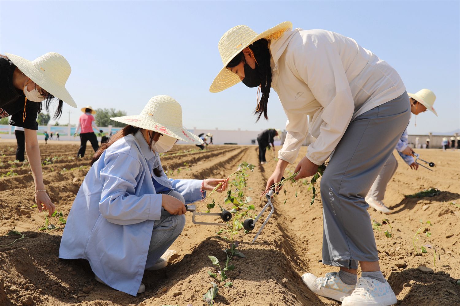 5月23日,北京農學院舉行2023年耕讀教育啟耕儀式,師生們走進田間地頭同種一片“責任田”。