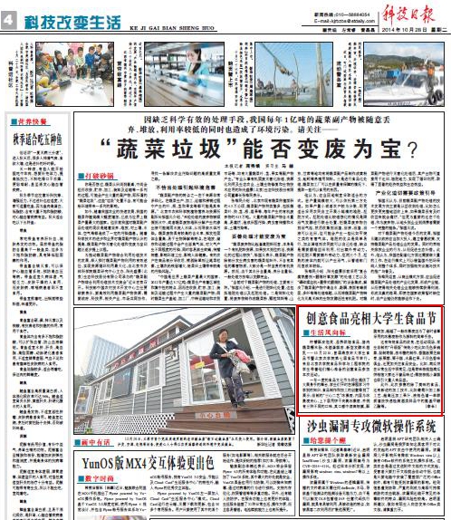 此外,此次參賽的除了美味的食品,還有新進(jìn)的加工技術(shù),比如葡萄汁加工新工藝、超高壓加工果汁、液相色譜—串聯(lián)質(zhì)譜法快速檢測(cè)酒類(lèi)樣品中的氨基甲酸乙酯等。(李長(zhǎng))