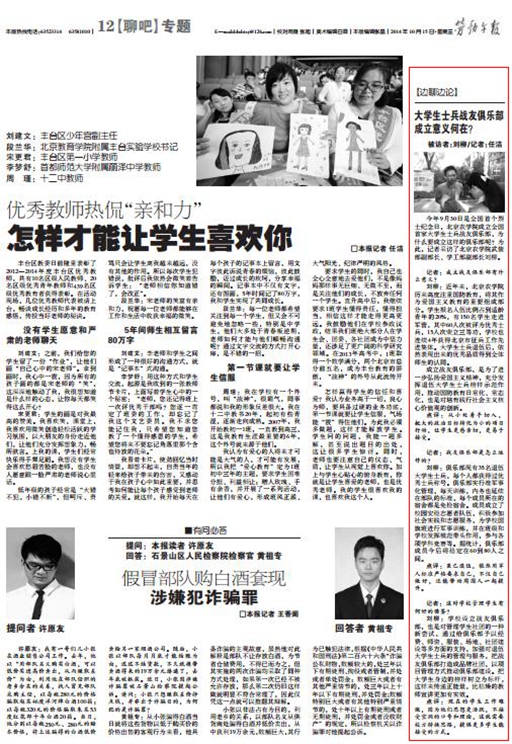 今年9月30日是全國首個烈士紀念日,北京農學院成立全國首家大學生士兵戰友俱樂部,為什么要成立這樣的俱樂部呢?為此,記者采訪了北京農學院武裝部副部長、學工部副部長劉柳。