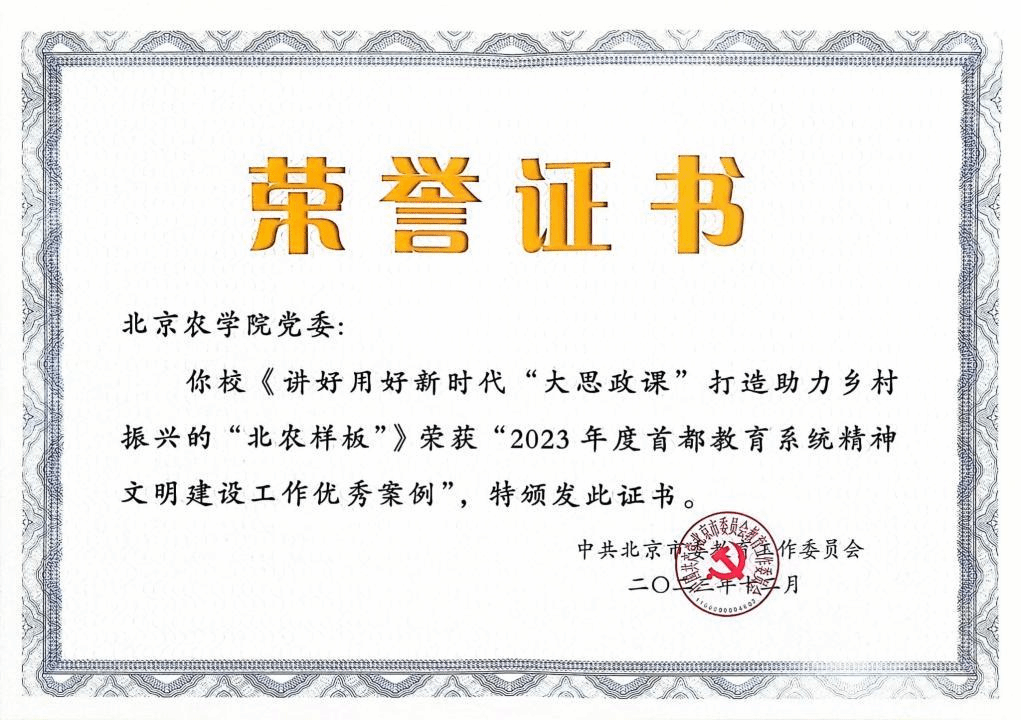 全力辦好立德樹人關鍵課程,思政課教師團隊在第四屆北京高校教師教學創新大賽中獲一等獎、在全國高校教師教學創新大賽中獲二等獎,實現新突破。師生同上一堂鄉村振興“大思政課”案例,先后榮獲首都教育系統精神文明建設工作“優秀案例”、北京市思想政治研究會“優秀案例”和全國高校教育融媒體“典型案例”。大力樹正氣、樹榜樣、樹典型,開展“最美北農人”評選和宣傳宣講工作,舉辦優秀教師表彰大會、優秀學生表彰大會,開展“講述我(我們)的育人故事”系列活動,遴選推薦的兩個優秀講述故事案例分獲市級一等獎和二等獎。持續提升新聞宣傳質量和水平,各類主流媒體對學校報道超過500次。