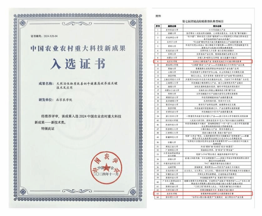 科技創新不斷取得新突破,獲批國家“十四五”重點研發計劃項目2項,“天然活性物質改善奶牛健康高效養殖關鍵技術及應用”入選2024中國農業農村重大新技術。學校按照“一家主建、多家共享、社會共用”原則,在北京市率先成立4個鄉村振興驛站,高質量建設科技小院、教授工作站、博士農場和大學科技園,深度融入北京農業中關村建設和“百千工程”建設,連續四屆共5個案例成功入選教育部省屬高校精準幫扶典型項目,“頭雁”項目考核再獲全國“優秀”;學校與市殘聯、市教委簽約共建北京市導盲犬培訓基地,扎實推進北京市民生實事項目。中國殘聯主席程凱,中國殘聯黨組書記、理事長周長奎,中國殘聯理事、中國盲協主席李慶忠到學校調研導盲犬培訓基地建設工作并對基地建設進展給予充分肯定。