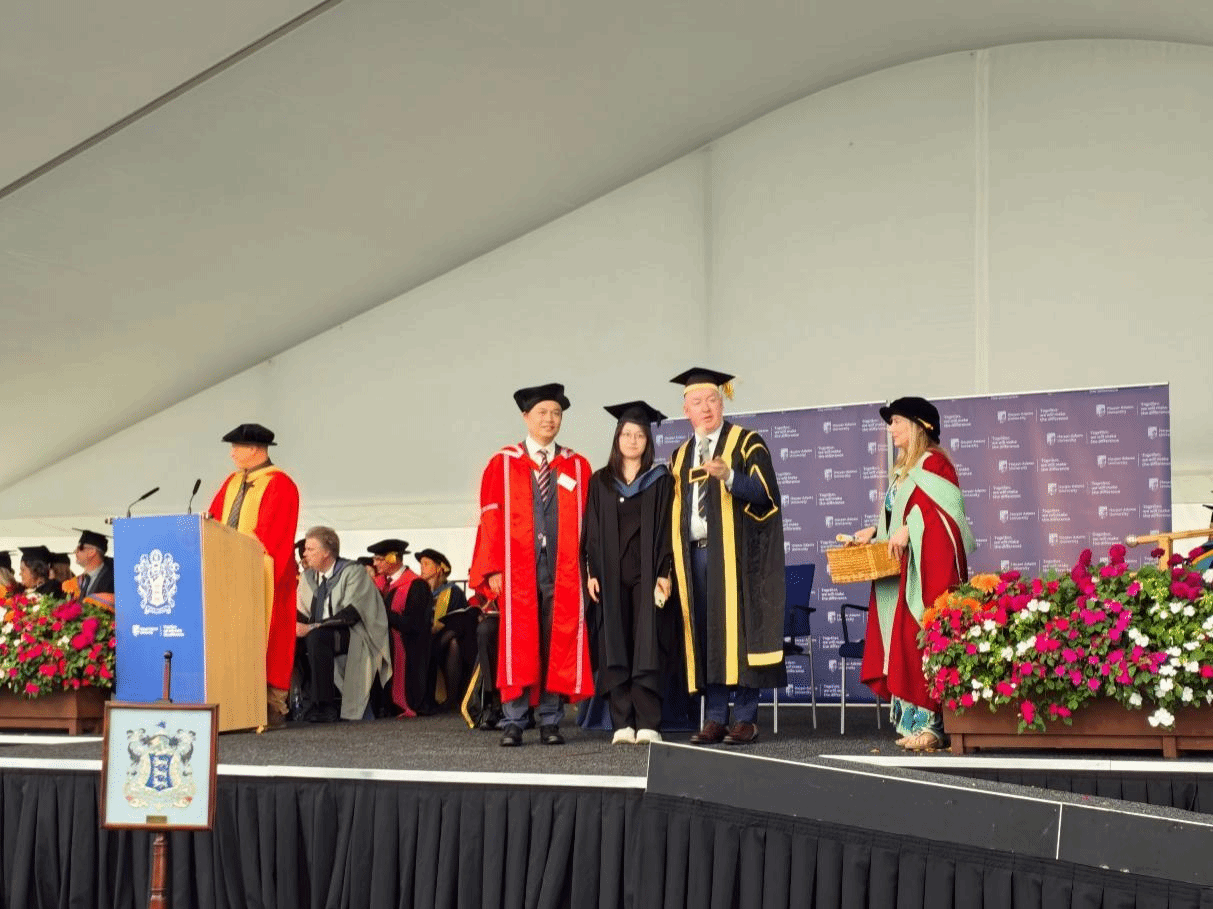 訪問(wèn)期間,代表團(tuán)與哈珀亞當(dāng)斯大學(xué)校長(zhǎng)及相關(guān)部門(mén)、學(xué)院進(jìn)行會(huì)談,共同回顧了兩校合作辦學(xué)歷程,充分肯定雙方取得的合作辦學(xué)成績(jī),達(dá)成了拓展互派教師訪學(xué)的合作意向。代表團(tuán)應(yīng)邀參加了哈珀亞當(dāng)斯大學(xué)2024屆畢業(yè)生畢業(yè)典禮,張勁柏受邀為在英學(xué)習(xí)的我校中外合作辦學(xué)項(xiàng)目2024屆畢業(yè)生頒發(fā)了畢業(yè)證書(shū),向他們圓滿完成學(xué)業(yè)表示衷心祝賀,并專程看望了我校剛剛抵達(dá)英國(guó)的2025屆中外合作辦學(xué)項(xiàng)目學(xué)生。