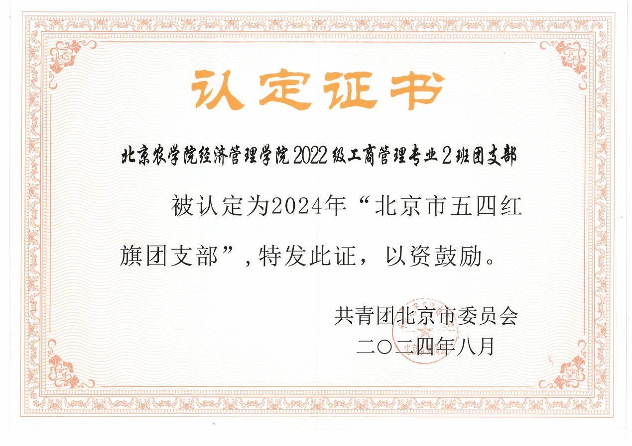 近日,共青團北京市委員會公布了2024年“北京市優秀共青團員”“優秀共青團干部”“五四紅旗團委(團支部)”“優秀少先隊員”“優秀少先隊輔導員”“優秀少先隊集體”認定結果。經二級團組織推薦、參評初審等程序,北京農學院經濟管理學院2022級工商管理專業2班團支部被認定為“北京市五四紅旗團支部”。
