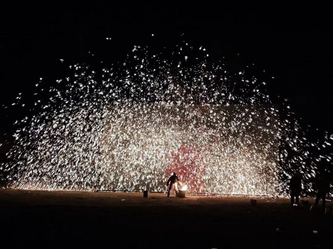 鐵水與空氣充分交融,化為滿天流星,匯聚一幅幅美麗畫卷