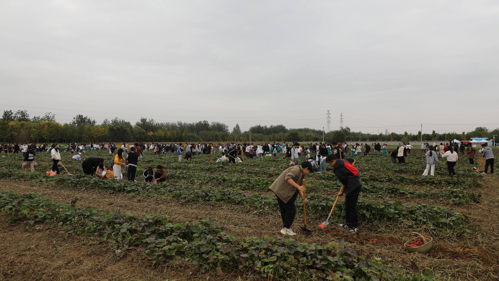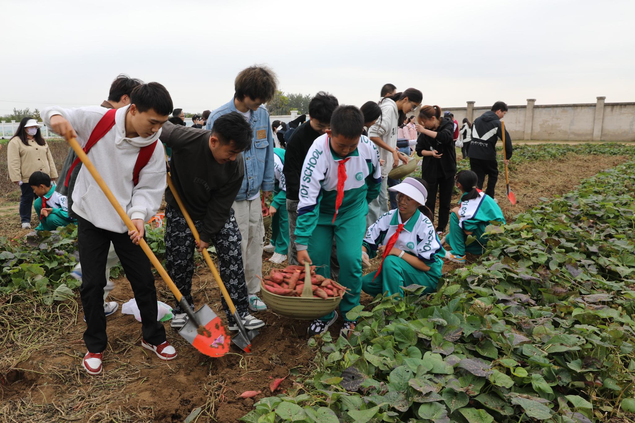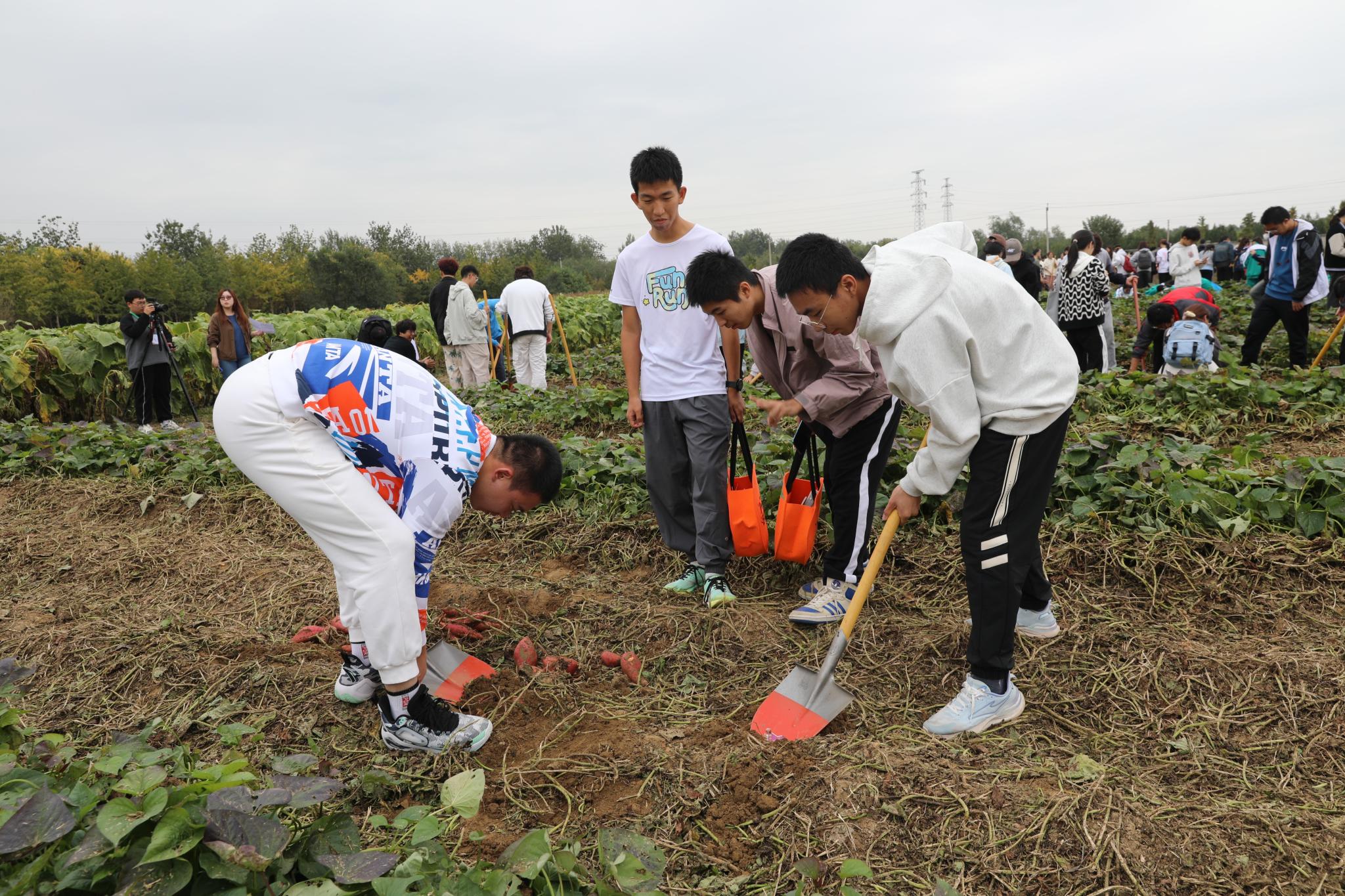“今天挖到的紅薯不僅是新品種,還凝結著新的種植技術,這次秋收農事活動讓我更深地認識到農業科技的重要性……”在北京農學院耕讀教育實踐基地,喜悅的笑臉、勞作的身影、滿滿的收獲,共同織就一幅豐收圖。10月16日,北京農學院舉辦“大手拉小手,共繪豐收景”秋收節活動,來自北京農學院、北京大學、北京科技大學、華北電力大學、中國音樂學院、北京一零一中學昌平實驗學校的近600名大中小學師生共采豐收果實,同上一堂田間地頭“大思政課”。