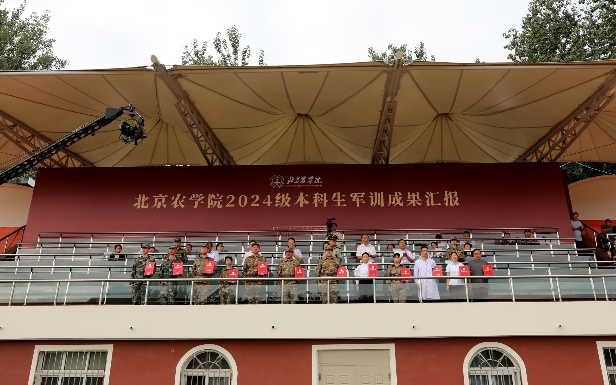 段留生在講話中向嚴謹帶訓的教官們表示衷心感謝,向全力保障軍訓順利開展的老師們致以誠摯的慰問,對同學們軍訓期間的精彩表現表示充分肯定。他勉勵同學們要堅定理想信念,將軍訓中培養的良好品質和優良作風努力轉化為勤奮學習和勵志報國的不竭動力,奮力書寫為中國式現代化挺膺擔當的青春篇章。要堅持軍訓中養成的鍛煉習慣,把塑造強健體魄融入日常,堅持五育并舉,以良好的精神面貌去追逐夢想。要把軍訓中頑強拼搏、吃苦耐勞的精神融入“厚德篤行,博學尚農”的校訓精神中,繼承和發揚永久奮斗的光榮傳統,勇擔當、思進取、善作為,把奮斗精神體現在做好每一件小事、完成好每一項任務上,努力在服務鄉村振興的火熱實踐中經風雨、受鍛煉、長才干,為服務新時代首都發展、全面推進鄉村振興作出更大貢獻。