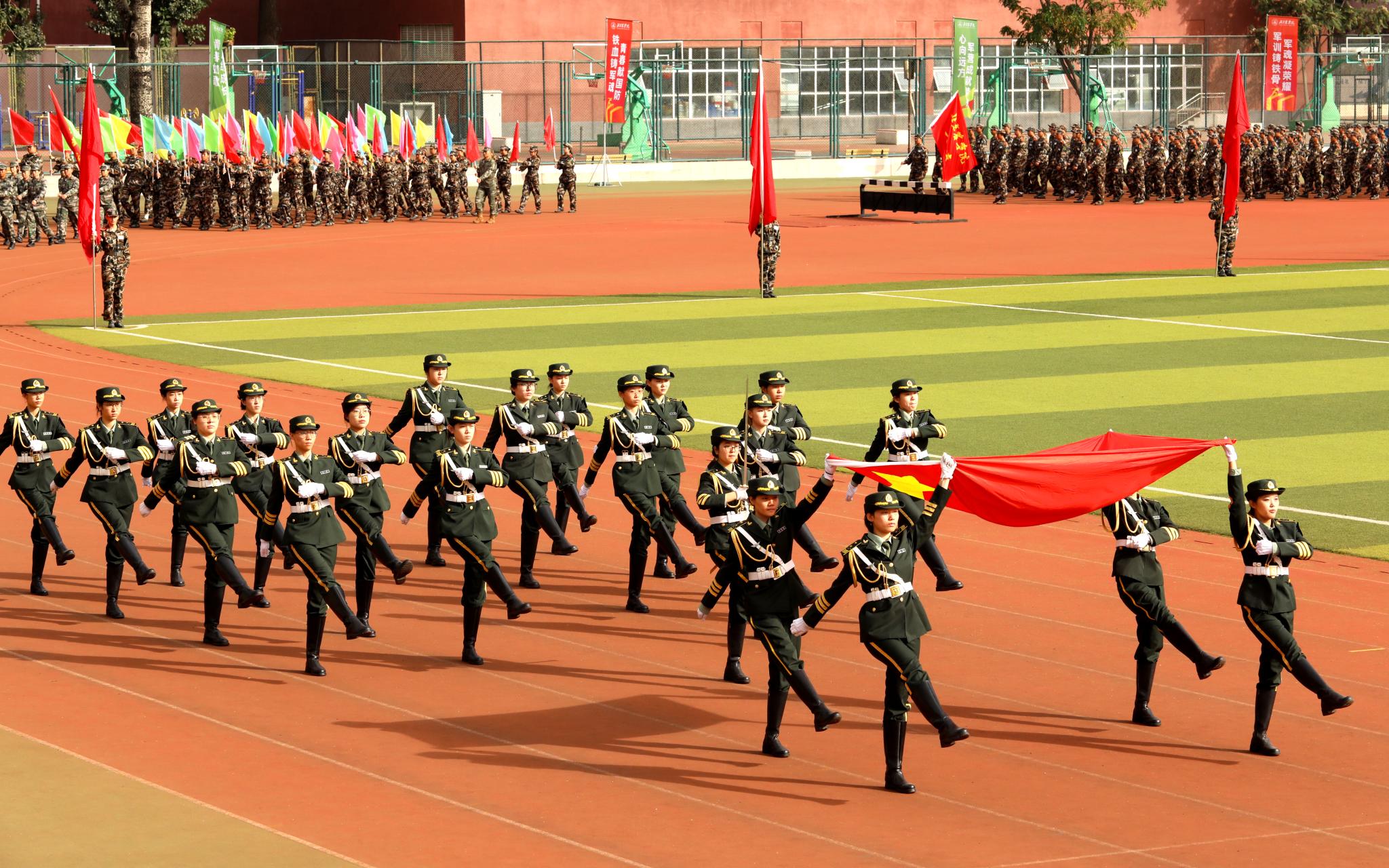 相關職能部門和二級學院負責人,帶訓教官、隨訓教師,輔導員、班主任、全體參訓學員參加軍訓成果匯報展示活動。