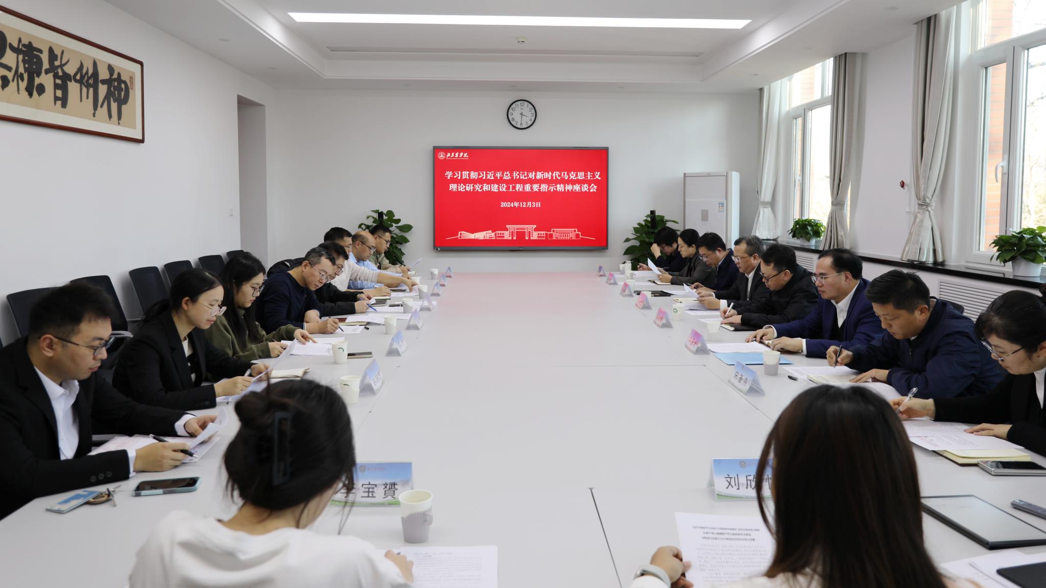12月3日,學校召開學習貫徹習近平總書記對新時代馬克思主義理論研究和建設工程重要指示精神座談會。學校黨委常委、紀委書記吳君楚出席會議,和大家交流學習體會,對學習貫徹總書記重要指示精神提出具體要求;相關職能部門負責人、相關二級學院負責人及教師代表、青馬班學員代表參加座談會,結合實際談體會、談認識、談貫徹落實建議和措施。會議由黨委常委、宣傳部部長高建偉主持。