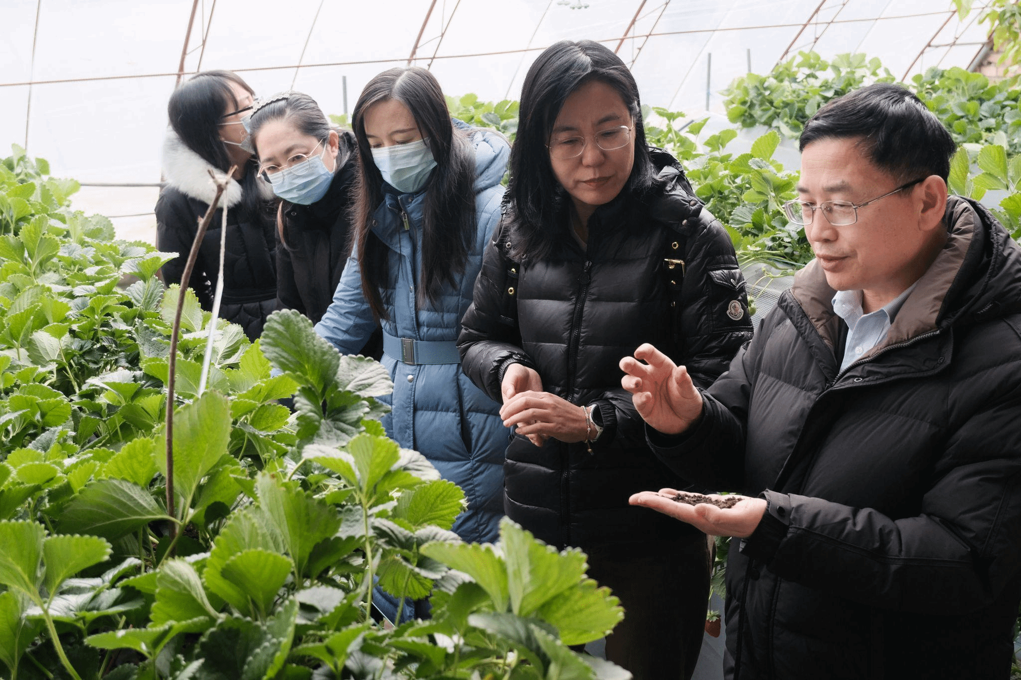 今年2月,段留生帶領(lǐng)團(tuán)隊(duì)教師深入昌平區(qū)科技小院、農(nóng)業(yè)場(chǎng)站、種植基地等,開(kāi)展現(xiàn)代農(nóng)業(yè)技術(shù)專題培訓(xùn),現(xiàn)場(chǎng)指導(dǎo)草莓、番茄等產(chǎn)品種植和新技術(shù)應(yīng)用,深度調(diào)研草莓種質(zhì)資源和育種工作。團(tuán)隊(duì)教師為北京市現(xiàn)代農(nóng)業(yè)產(chǎn)業(yè)技術(shù)體系特色作物創(chuàng)新團(tuán)隊(duì)的崗位專家和技術(shù)員開(kāi)展專題培訓(xùn),介紹草莓抗冷助轉(zhuǎn)色的產(chǎn)品及應(yīng)用技術(shù),并深入田間地頭進(jìn)行現(xiàn)場(chǎng)示范和指導(dǎo)應(yīng)用。到草莓科技研發(fā)和示范推廣基地,深入調(diào)研草莓種質(zhì)資源圃建設(shè),為正在基地開(kāi)展科研和新品種選育工作的師生現(xiàn)場(chǎng)指導(dǎo)草莓安全、優(yōu)質(zhì)、高效栽培技術(shù)和雜交授粉工作,重點(diǎn)圍繞草莓育苗和栽培基質(zhì)研發(fā)提出指導(dǎo)建議。
