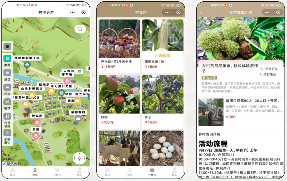 在鄉村產業方面,系統還可實現菜地果園的認養、共享雞舍、認養蜂箱、科普研學、沉浸式旅游等,把鄉村的資源與城市的需求連接起來,為游客提供停車引導、村內導航、游覽線路推薦、語音導覽、服務預訂、購買農特產品等服務,讓游客獲得更豐富的鄉村體驗。