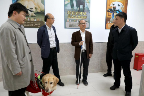 為深入貫徹落實習近平總書記關于殘疾人事業發展的重要論述和指示批示精神,推動殘疾人事業高質量發展,4月19日,在國際導盲犬日即將到來之際,中國殘聯理事、中國盲協主席李慶忠一行到學校調研導盲犬基地建設工作。中國盲協副秘書長趙公政,北京市殘聯黨組成員、副理事長董連民,我校黨委書記趙鋒,黨委副書記、院長段留生,黨委常委、副院長張勁柏,市殘聯相關部門、學校相關部門和二級學院負責人參加調研。