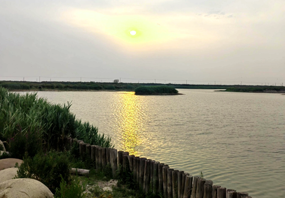 抓拍下濱海公園的夕陽,此時天津,晚風徐徐。想起上學期某個傍晚,柔風吹起,坐在北農小公園長椅上,欣賞夕陽在湖面作的美麗畫卷。